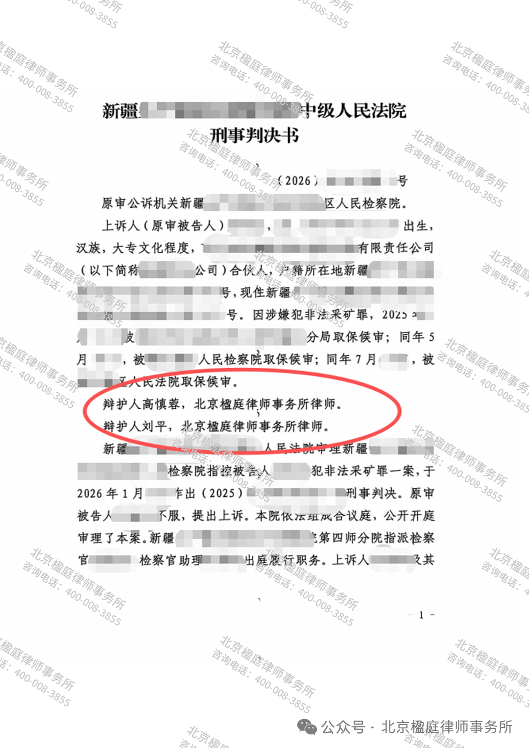 近期,北京楹庭律师事务所再次传来捷报。在新疆某中院审理的一起备受关注的非法采矿罪二审案件中,高慎蓉律师、刘平律师(中国政法大学博士)组成的辩护团队,凭借深厚的法学理论功底和敏锐的诉讼策略,成功扭转了一审“有期徒刑一年六个月”(实刑)的不利局面。