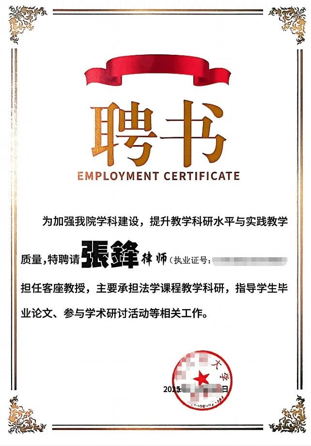 近日,北京楹庭律所刑事法律服务委员会主要成员张锋律师被北方工业大学聘任为客座教授,主要承担法学课程教学科研,指导学生毕业论文、参与学术研讨活动等相关工作,加强该院学科建设,提升教学科研水平与实践教学质量。